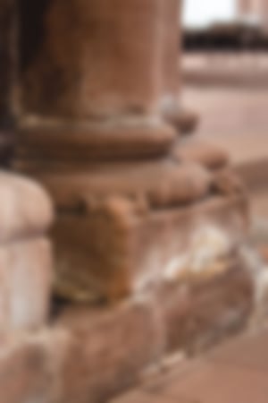 Auf dem Weg zum nächsten QR-Code kannst du einen Hinweis darauf finden, dass die Kirche in einen Sumpf gebaut wurde. Am Fuß einiger Säulen sind Feuchtigkeitsschäden und Ausblühungen zu erkennen. Durch den feuchten Untergrund, die aufsteigende Feuchtigkeit und chemische Reaktionen wird das Gemäuer angegriffen.