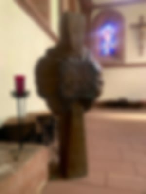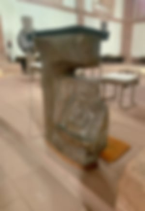Auch der Tabernakel und das neue Lesepult (Ambos) im Chorraum stammen von Schwester Clara.